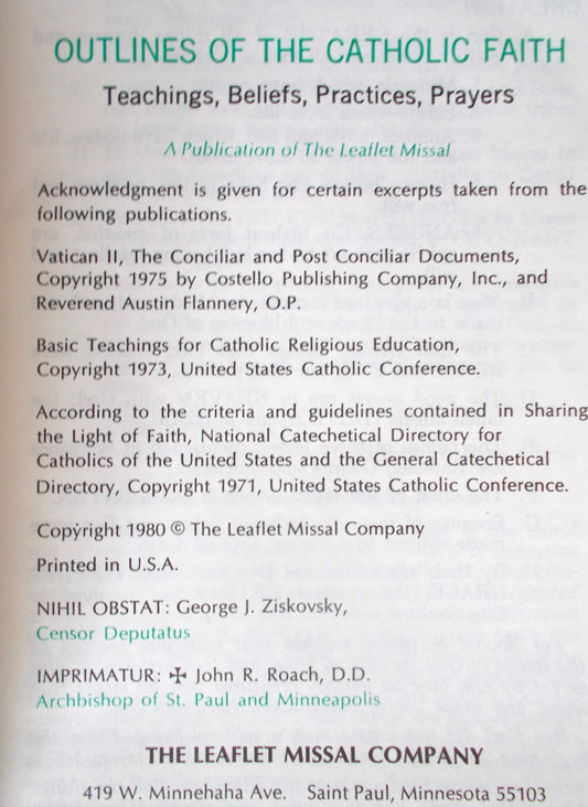 Outlines of the Catholic Faith : Teachings, Beliefs, Practices, Prayers - Used