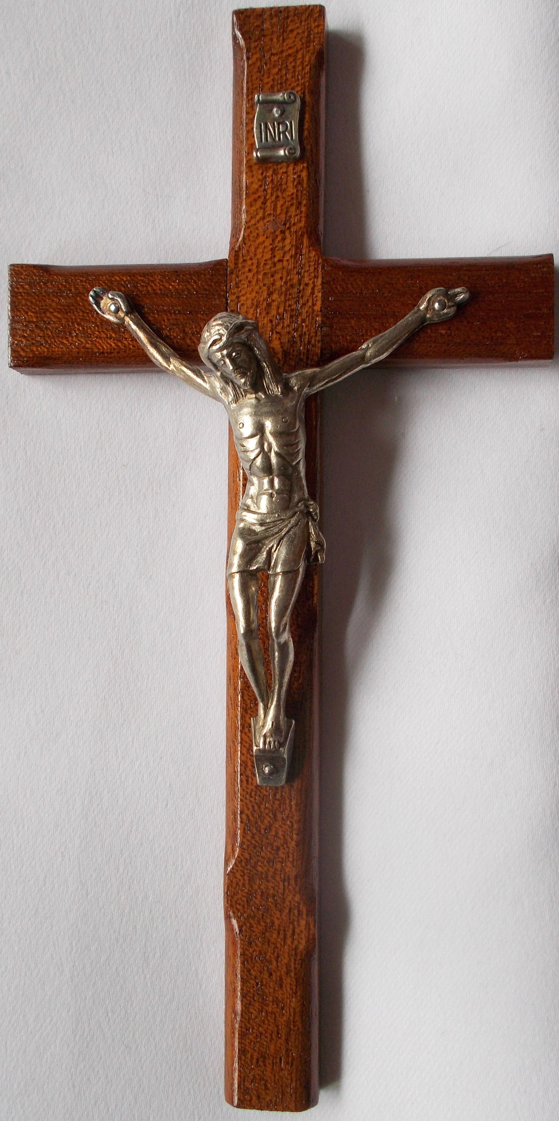 7" Mahogany Carved Crucifix With Pewter Corpus