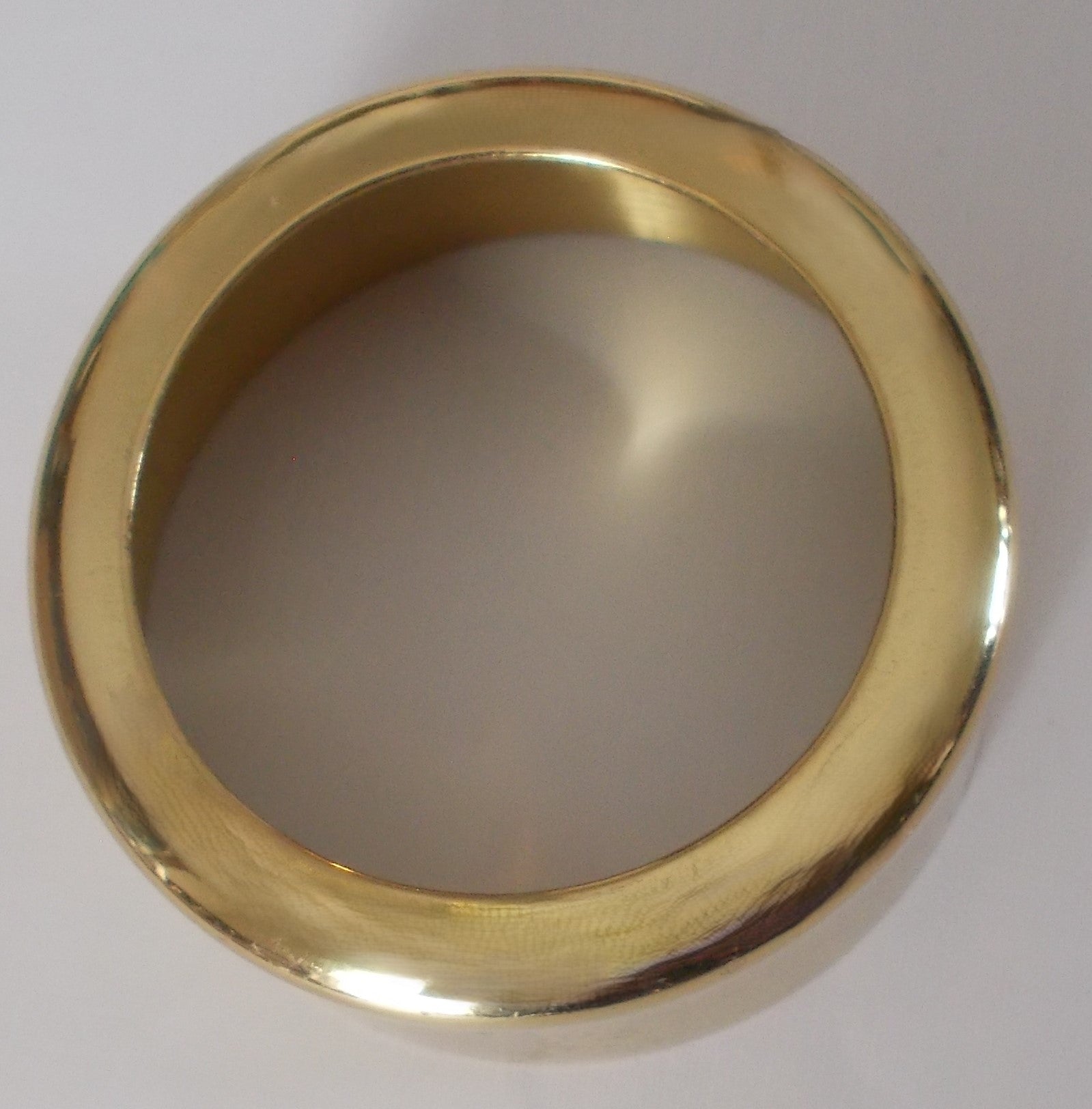 Brass Candle Follower measures 7/8 inch high, 2 inch outer diameter, 1 7/8 inner diameter, top hole measures 1 1/2 inches. top flat . May have slight blemishes.