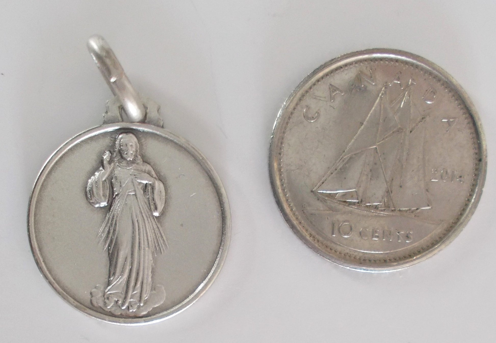 Approx. 5/8" Sterling Silver Divine Mercy Medal,