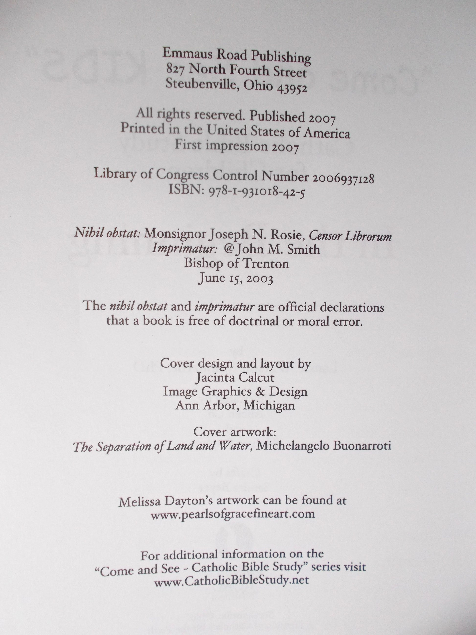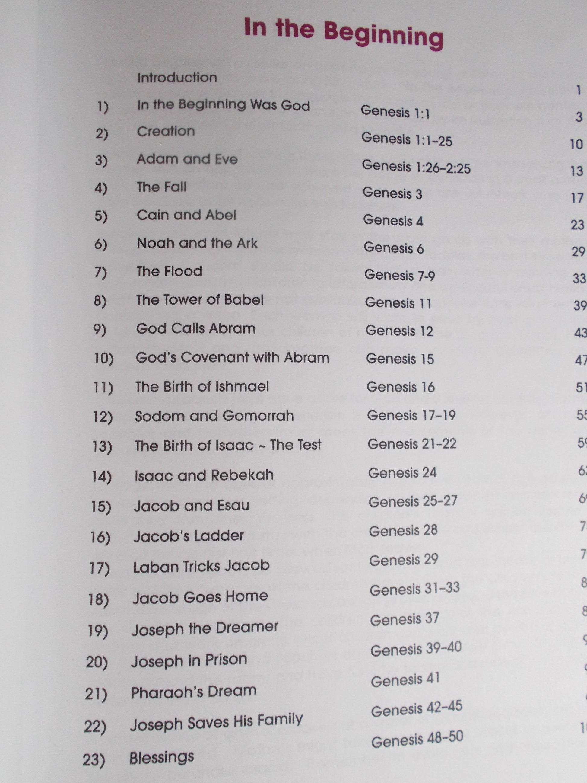 "In the Beginning, tells the bible story of Genesis to young children, ages 2-7. Instructional and orthodox. it is easy to use and teaches children traditional Catholic prayers." Taken from back cover.