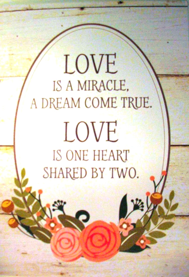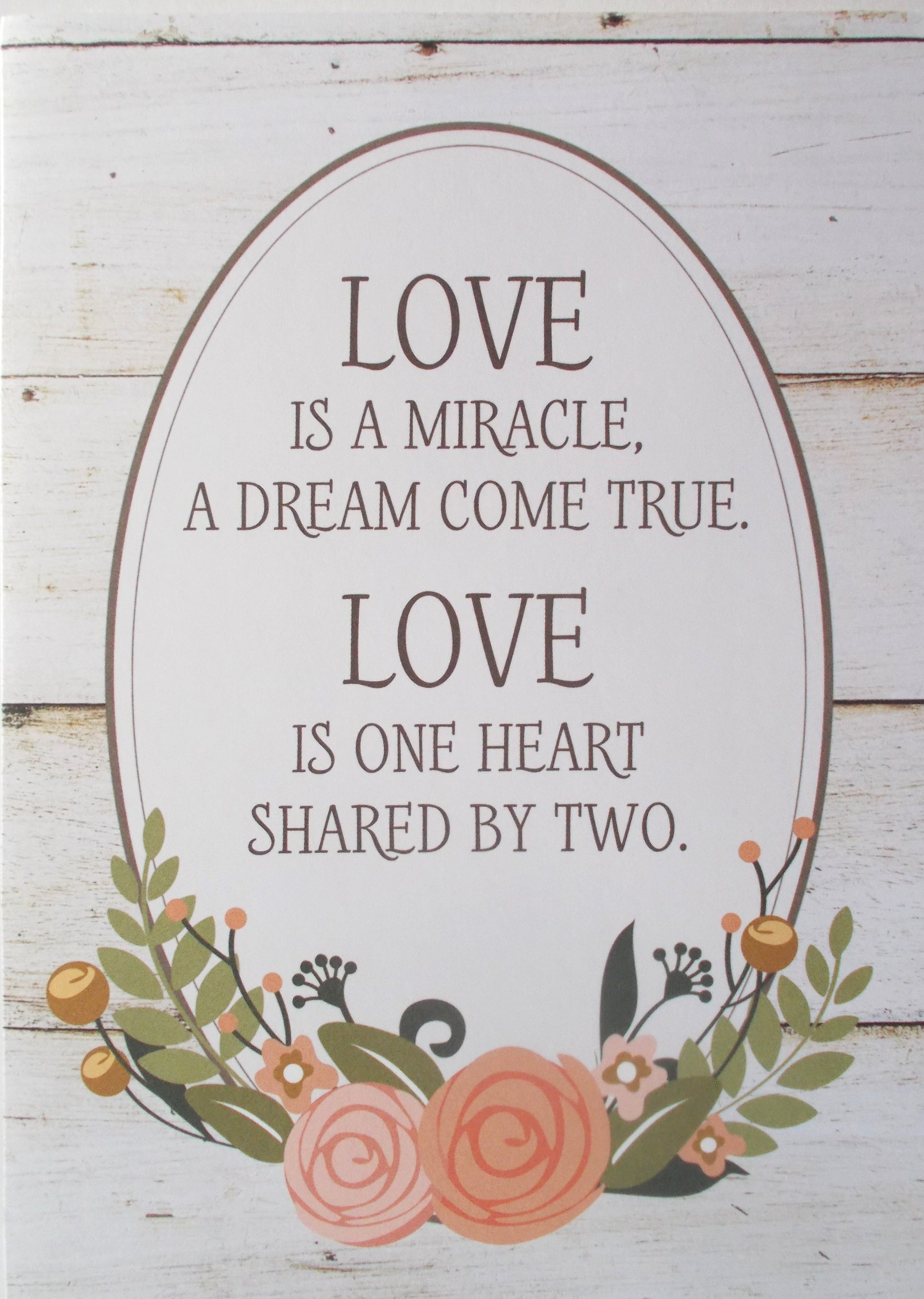Front of Card : Love is a Miracle, A Dream Come True. Love is One Heart Shared by Two.