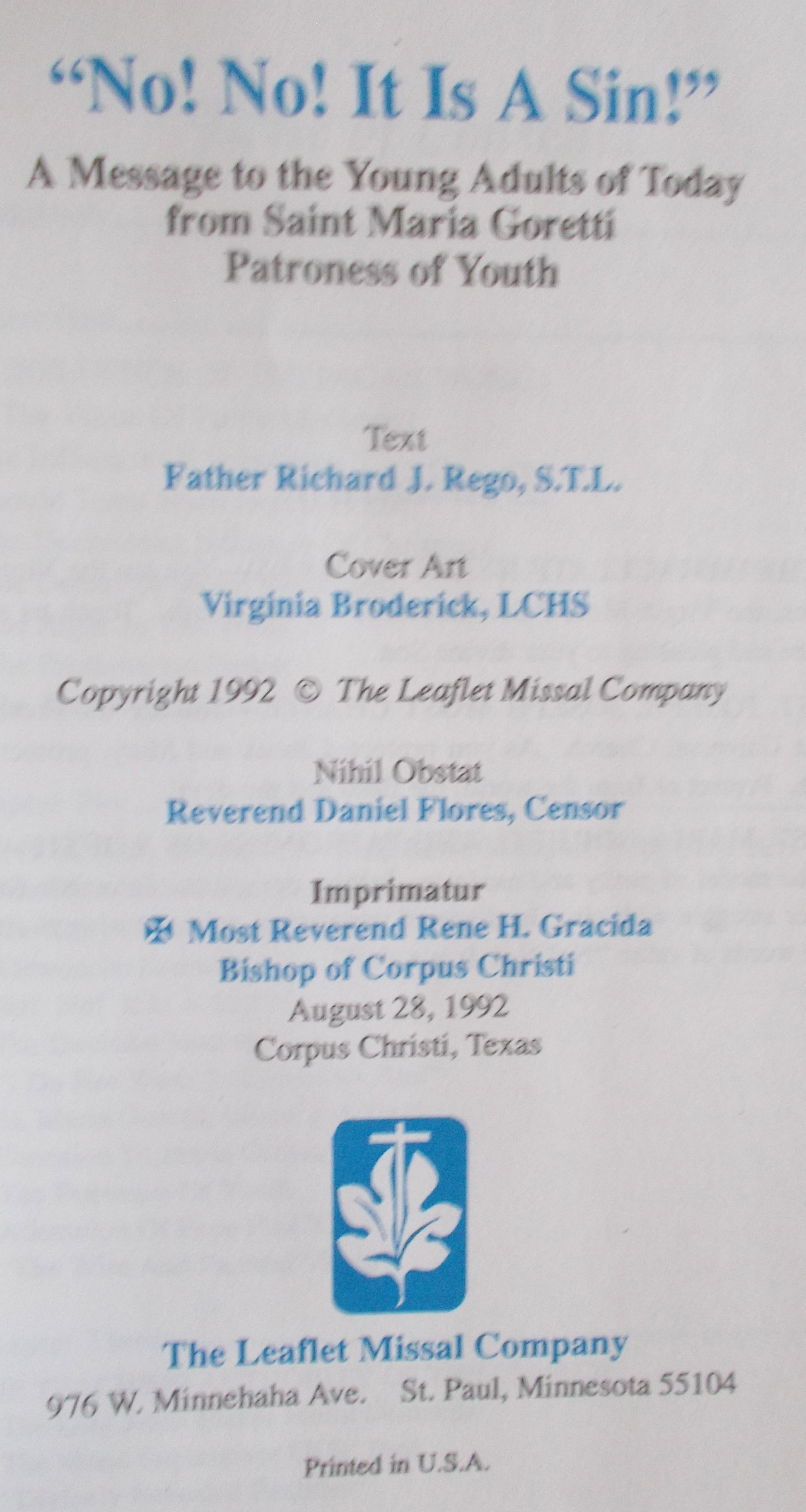 "No! No! It Is a Sin!": A Message to the Young Adults of Today from Saint Maria Goretti Patroness of Youth
