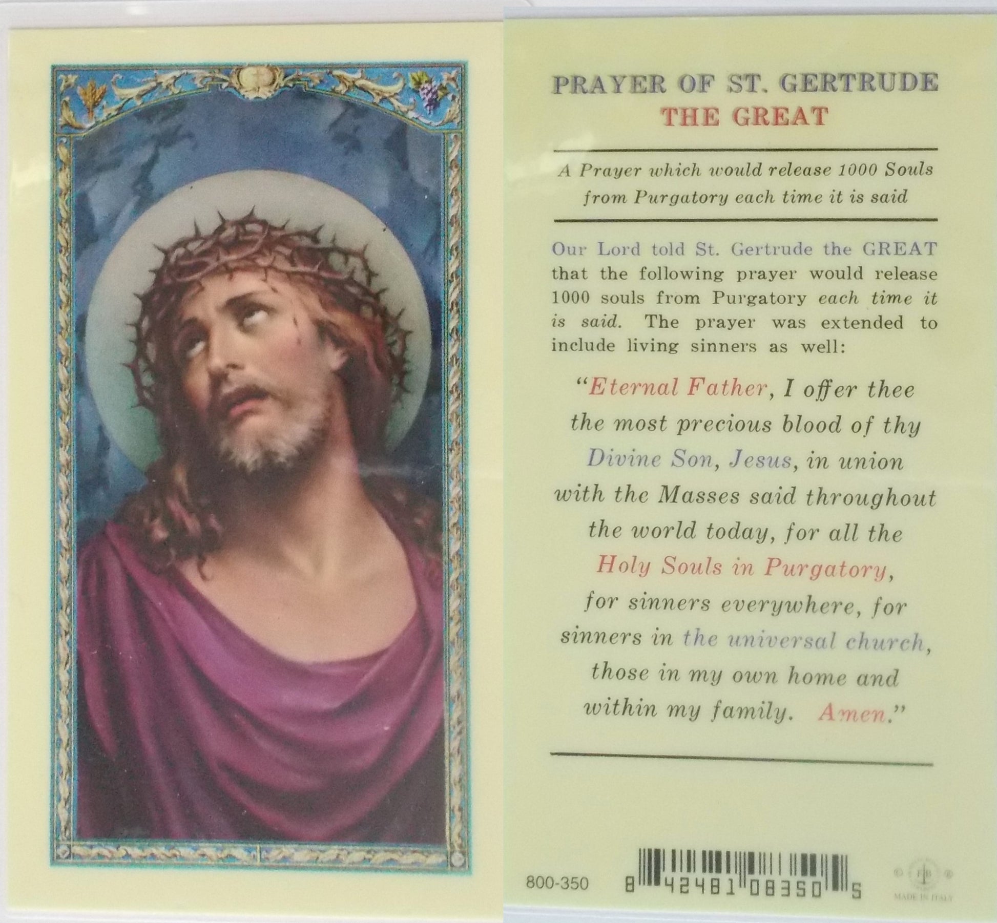 St Gertrude Pewter Medal & laminated prayercard ( Suffering Jesus with crown of thorn image),