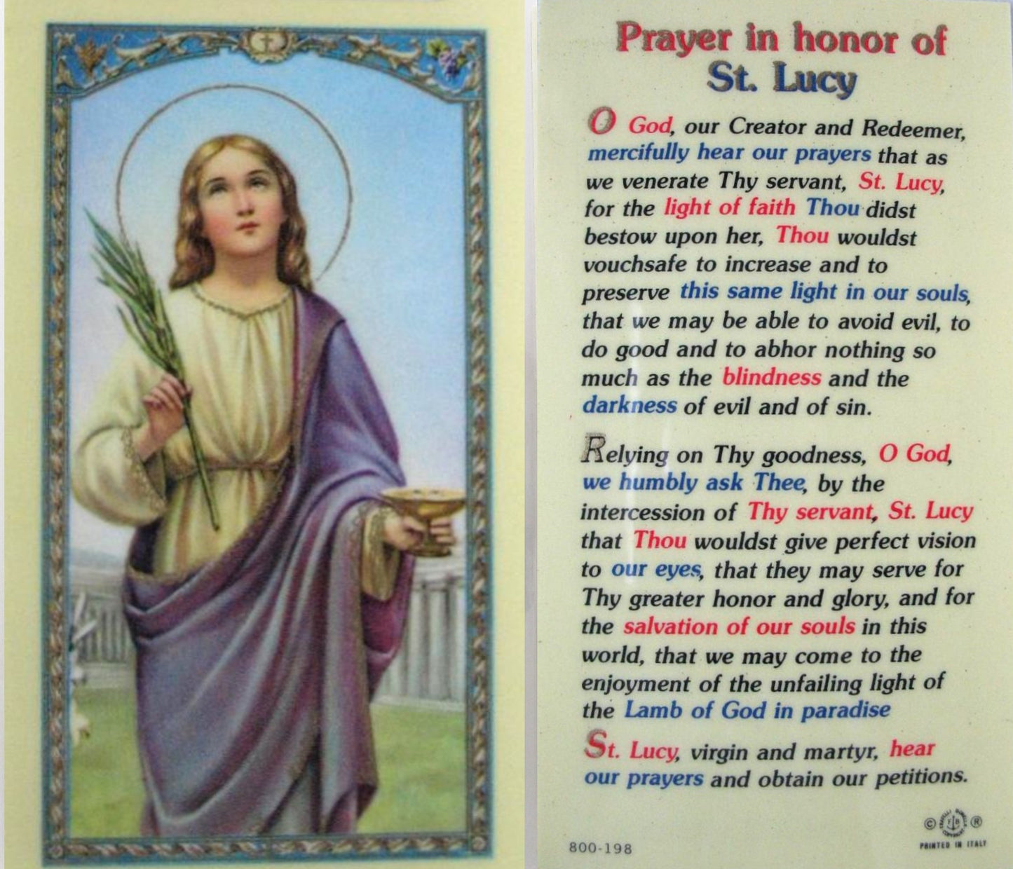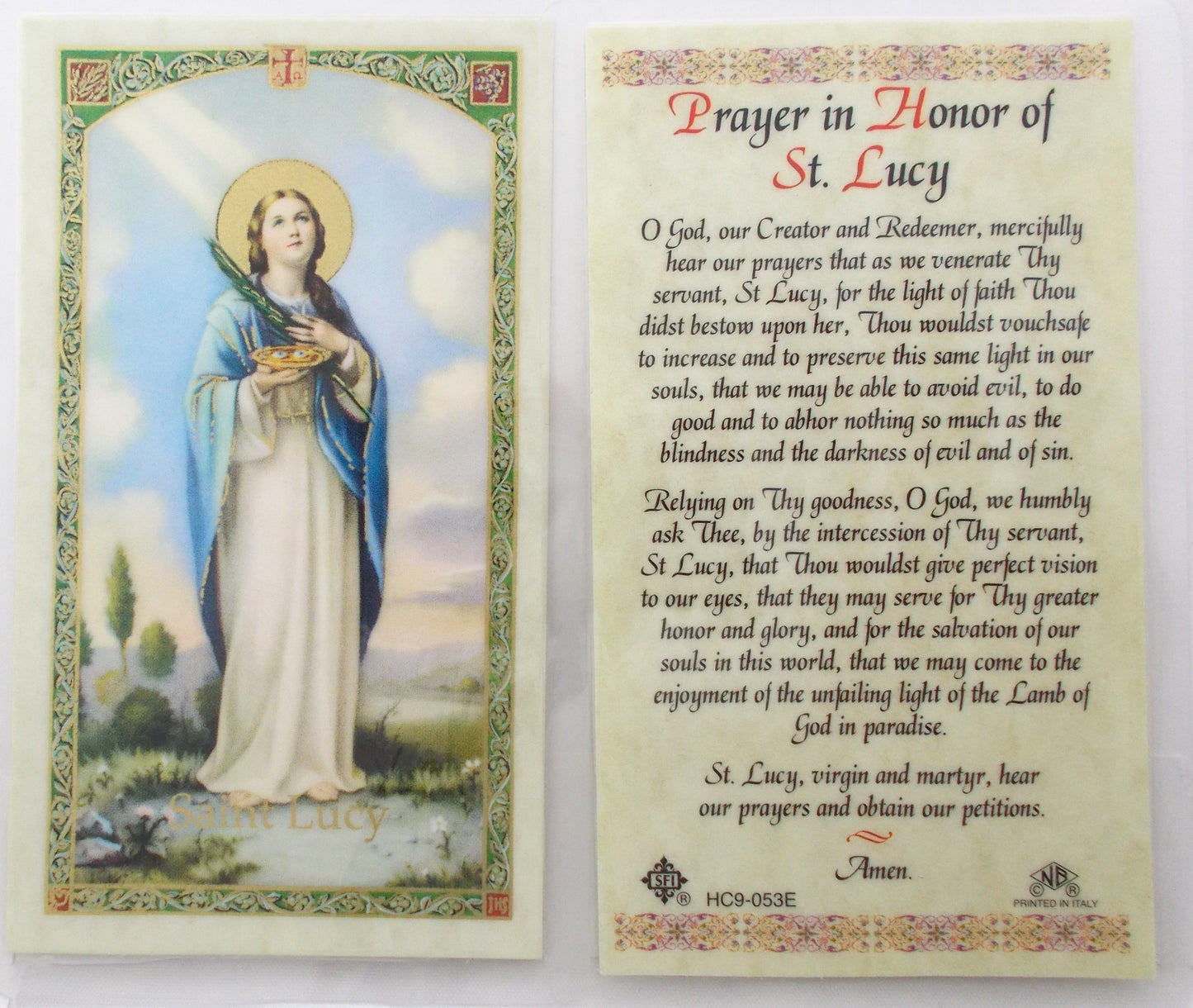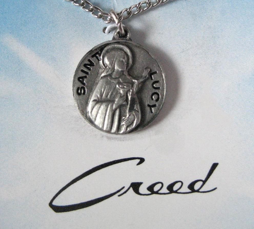 St. Lucy Pewter Medal with 18 inch chain & laminated prayercard,