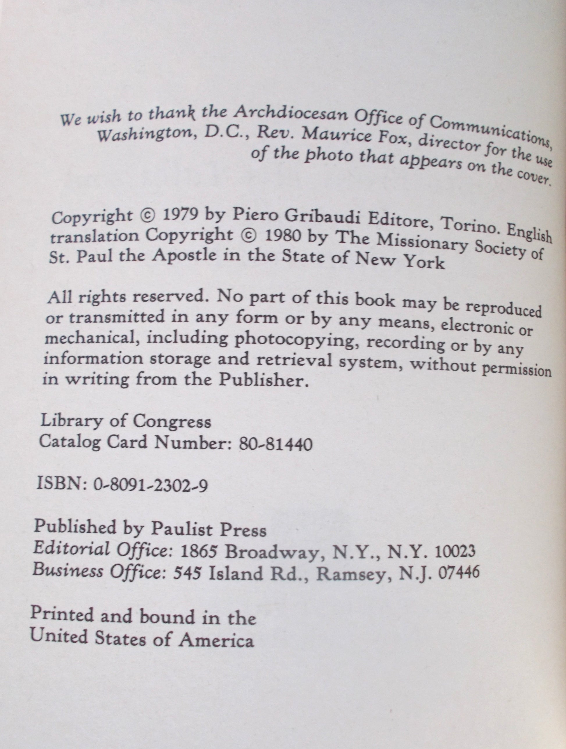 Excerpts From His Talks & Writings As Bishop & Pope,