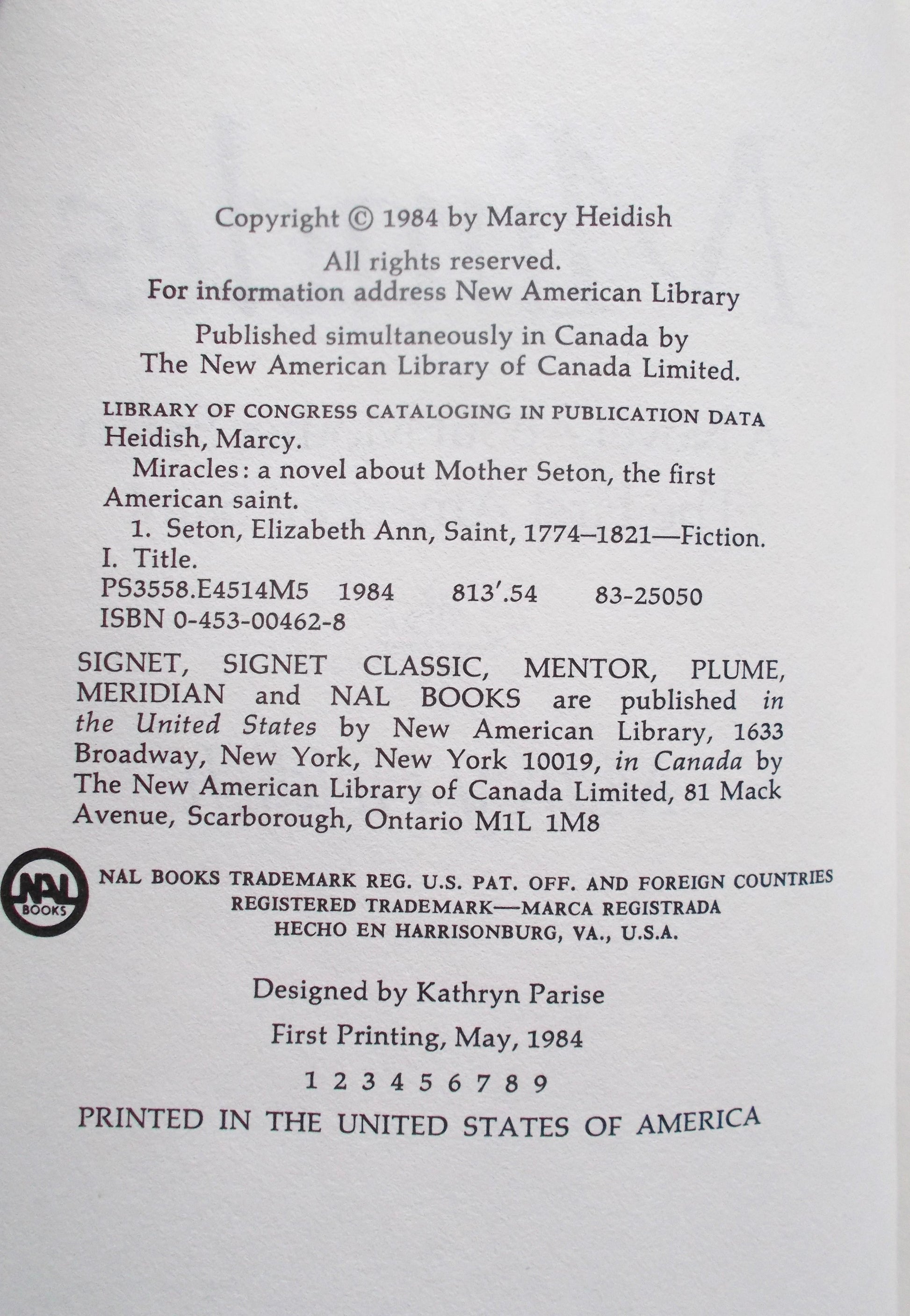 Used - Miracles : A Novel about Mother Seton the First American Saint