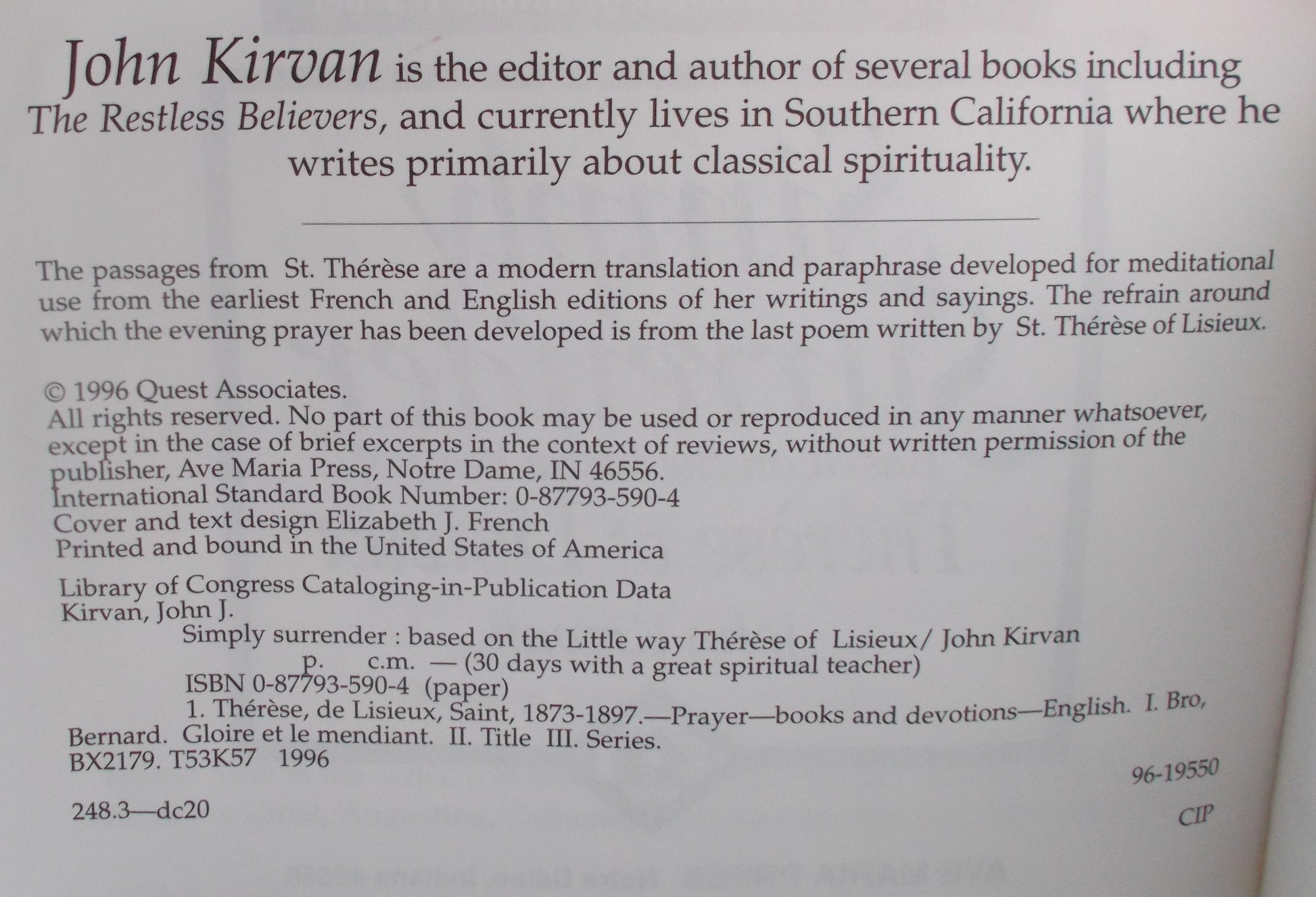 Used - Simply Surrender: Based on the Little Way of Therese of Lisieux - Daily 30 Days
