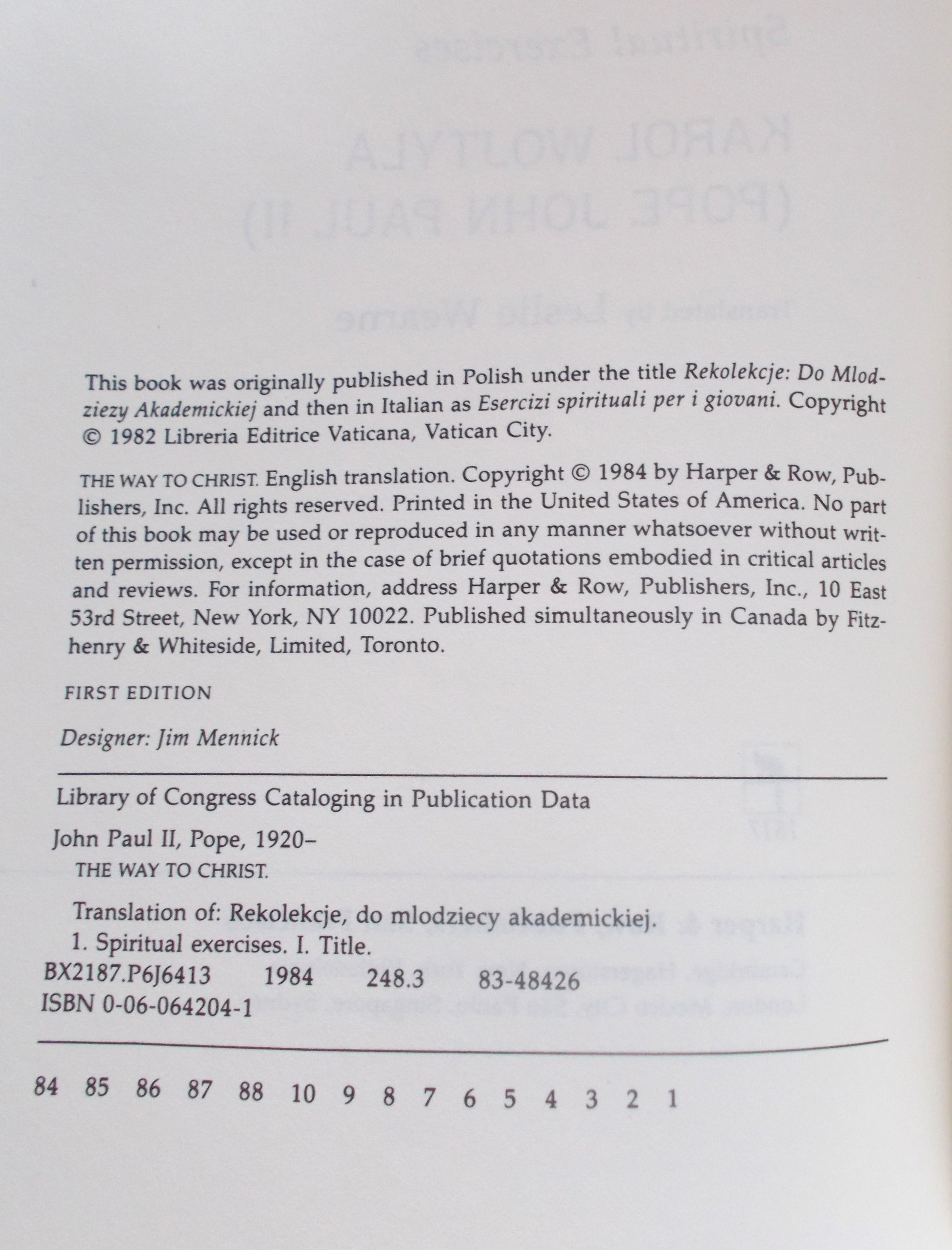 Used - The Way to Christ : Spiritual Exercises by Karol Wojtyla - hardcover
